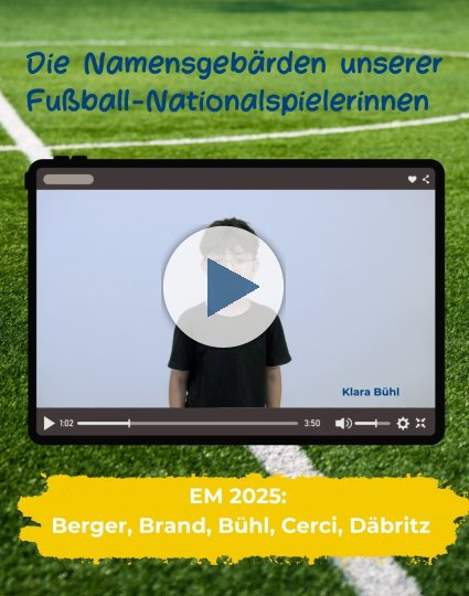 Anlässlich der Fußball-EM der Frauen in der Schweiz sind Namensgebärden der Nationalspielerinnen entstanden. Denn für viele gehörlose Fans bleibt ein barrierefreier Zugang verwehrt. Torjubel, Stadiondurchsagen, Fanchöre, Kommentare aus der Sprecherkabine und ein Pfiff zum Anstoß hören sie nicht. Um ein starkes Zeichen für Inklusion zu setzen haben Schülerinnen und Schüler unserer Leopoldschule sich vor die Kamera getraut und zeigen die Namensgebärden der Spielerinnen. Wie immer flossen für die Gebärden Namen, Aussehen, Spielpositionen oder charakteristische Eigenschaften und Angewohnheiten der Spielerinnen mit ein. Unterstützt und gefördert wird das Projekt vom DFB, der Aktion Mensch und unserer Johannes-Ziegler-Stiftung. Gleichzeitig entstand das Gebärdenplakat durch die Mühlezeitung des SBBZ Haslachmühle.