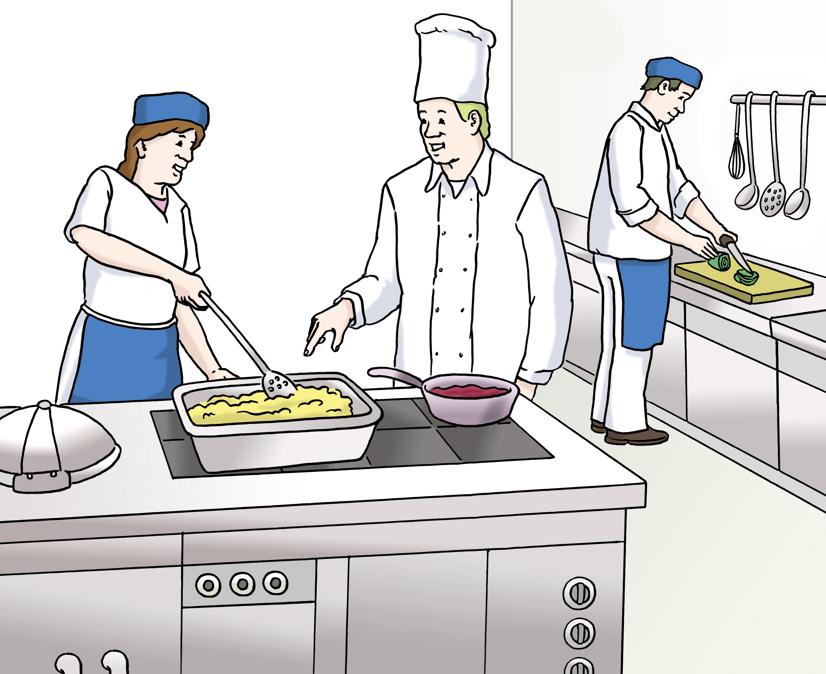 Die Leute von der Küche kaufen auch viel bio. Das bedeutet: Es ist gut für die Umwelt. Und es ist gesund. |