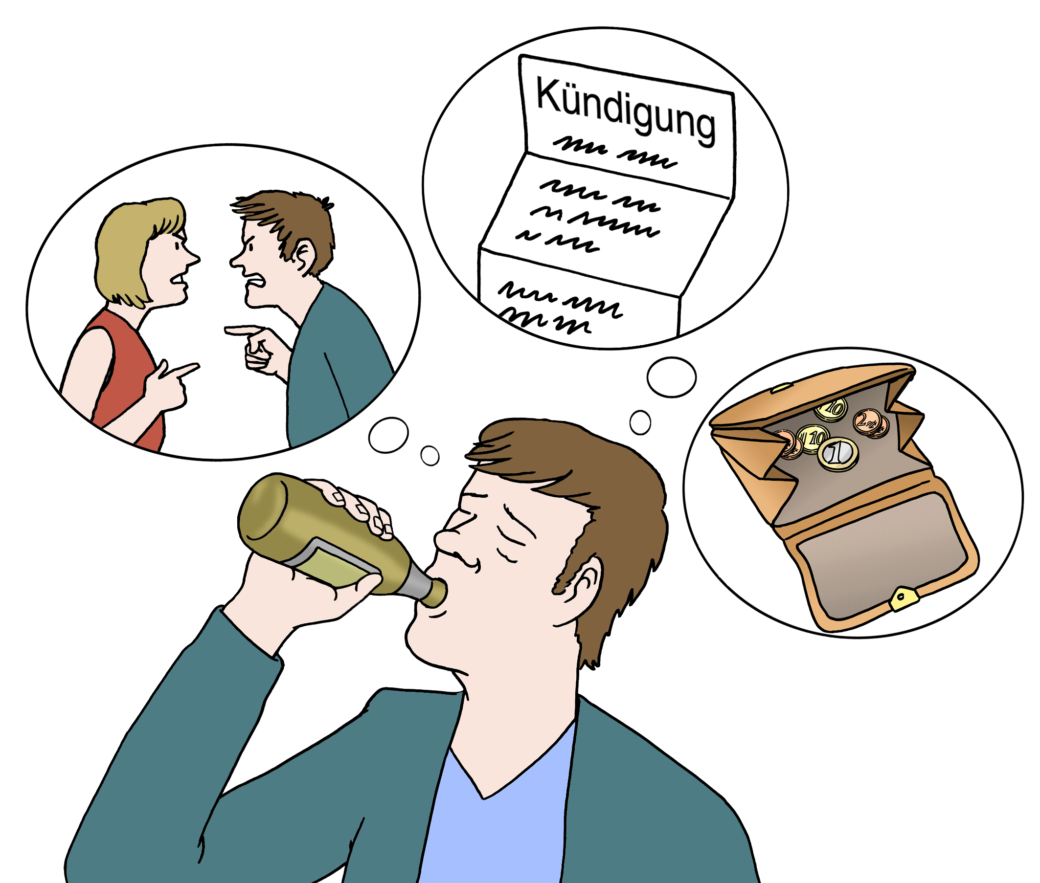 Die Menschen vergessen dann wichtige Aufgaben. Sie gehen nicht zur Arbeit. Es kommen immer mehr Probleme dazu. |