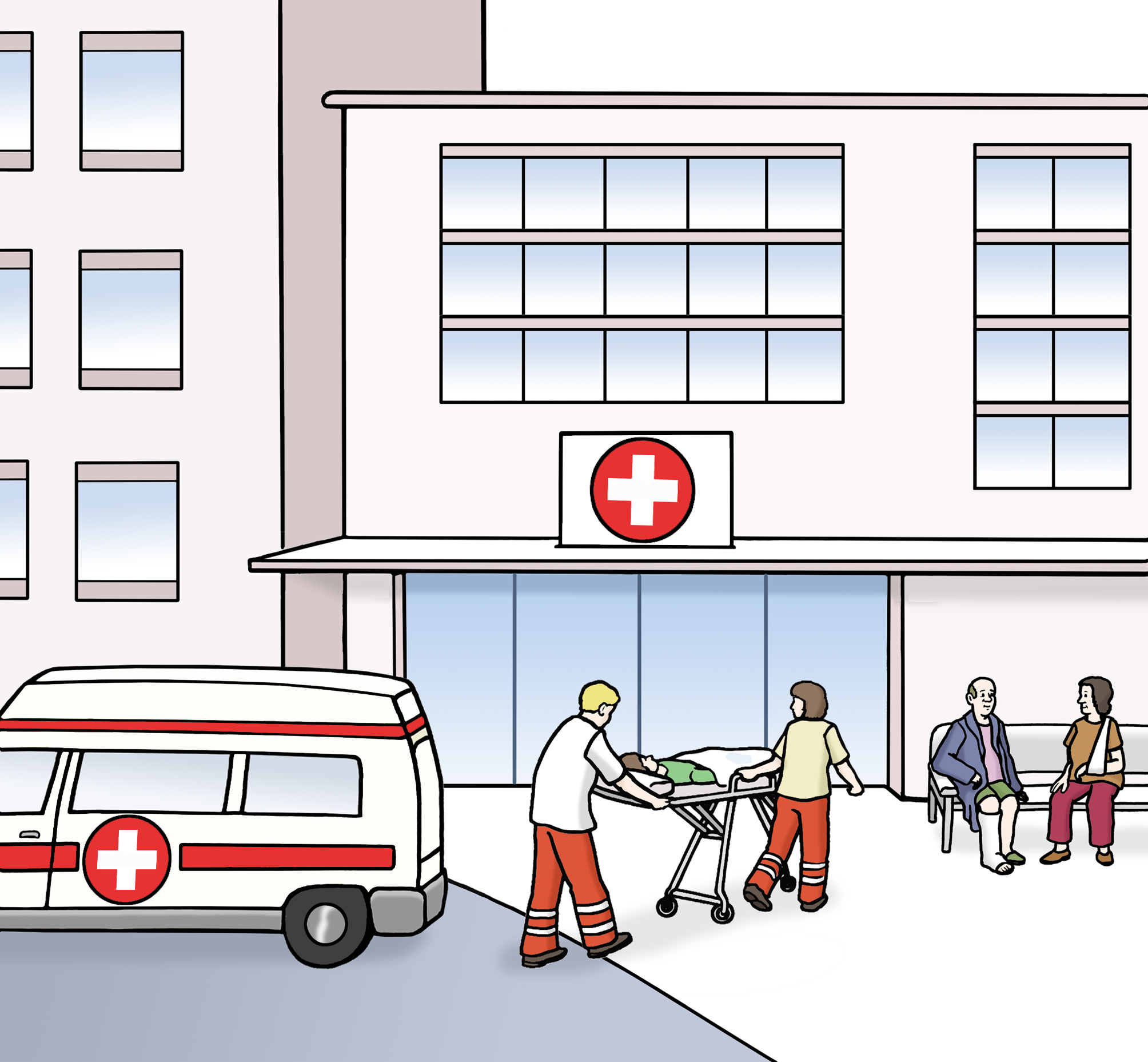 Im Krankenhaus werden die Menschen wieder gesund. |