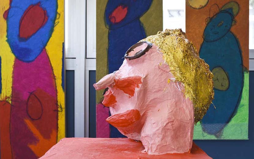 »Wir müssen für unsere Künstler einen Rahmen schaffen, damit sie ihre eigenen Nischen finden können und ihnen schöpferisches Arbeiten ermöglicht wird«, erklärt Silke Leopold, ausgebildete Interdisziplinäre Kunsttherapeutin, Kreativpädagogin, freie Künstlerin und Leiterin der Malwerkstatt der Behindertenhilfe. Oft beginne dies schon damit, den richtigen Arbeitsplatz für jeden Künstler zu entdecken – einer arbeite beispielsweise lieber im Abseits, ein anderer lieber mittendrin, einer sucht stehend das Licht, der andere den spannungsvollen Kontakt zum Nächsten.