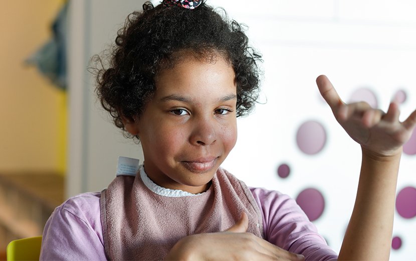 Als Spezialeinrichtung für Menschen mit eingeschränkten Kommunikationsfähigkeiten decken wir den Bereich »Unterstützte Kommunikation« in seiner ganzen Bandbreite ab. Unsere Mitarbeiterinnen und Mitarbeiter verfügen über besondere Kompetenzen in »Unterstützter Kommunikation« und beherrschen die Gebärden aus der Gebärdensammlung »Schau doch meine Hände an«. Das heißt: Lautsprache wird durch vielfältige Maßnahmen und Methoden unterstützt, ergänzt oder ersetzt.
