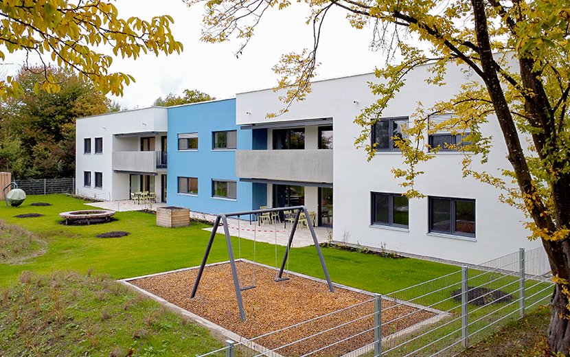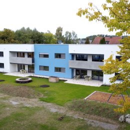 Unser schönes, modernes, durchweg barrierefreies Wohnhaus für Menschen mit Behinderungen wurde 2025 eröffnet. Es liegt im ruhig-ländlichen Obereschach, einem Teil der Ortschaft Eschach, die zur Stadt Ravensburg gehört. In unmittelbarer Nähe zum Standort, der nur 15 Kilometer vom Bodensee entfernt ist, befinden sich auch unsere Fördergruppen.