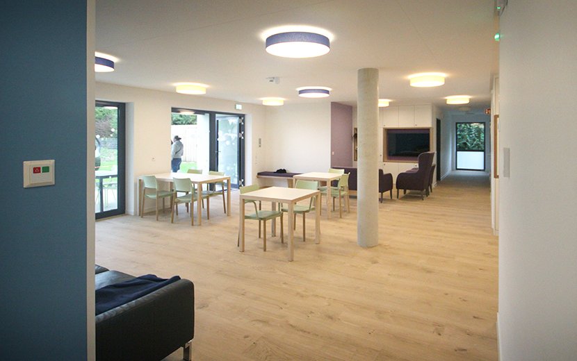 Für die Freizeitgestaltung organisieren wir regelmäßig gemeinsame Aktivitäten wie etwa Ausflüge, Fernsehen, Spieleabende, Singen, gemeinsame Mahlzeiten oder Sportangebote. Hierzu gibt es in den großen, hellen und offenen Gemeinschaftsbereichen im Erdgeschoss viel Platz zur Begegnung, der gerne genutzt wird.