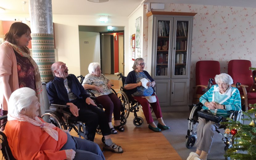 Angelika Breski erfreut sich an ihrer recht guten Gesundheit. Gerne nimmt sie an den Aktivierungen im Haus teil, bei denen sie auch immer auf Editha Spatzier trifft, und mehrmals täglich führt sie ihr Weg ins Freie vors Haus zum Rauchen. „Ich sag‘s ja nicht so gern, aber auch als Raucherin kann man scheinbar sehr alt werden - Ausnahmen bestätigen eben die Regel“, sagt Susanne Olhorn, Mitarbeiterin der Sozialen Betreuung, mit einem Augenzwinkern.