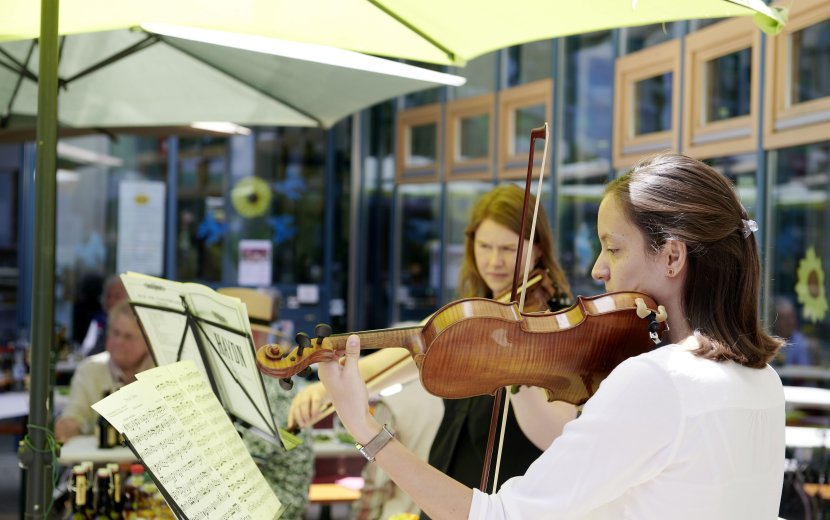 Pfarrerin Susanne Fleischer eröffnete das Fest mit einem Gottesdienst. In ihren Ansprachen wertschätzten Bürgermeister Dr. Jürgen Soltau und die Vertreter des Fördervereins das Seniorenzentrum und verdeutlichten, wie tief die Pflegeeinrichtung in der Gemeinde verwurzelt ist. Die Mitarbeitenden und viele Ehrenamtliche trugen dazu bei, dass der Tag etwas Besonderes für die Senioren und die Gäste wurde. So spendeten die Mitglieder des Fördervereins Gemeindepflegehaus Härten e.V. die leckeren Kuchen für dieses Fest. Musikalisch wurde diese Veranstaltung von zwei ehrenamtlich engagierten Medizinstudentinnen auf ihren Geigen und der Darbietung von Berthold Grauer auf seiner Ziehharmonika begleitet.