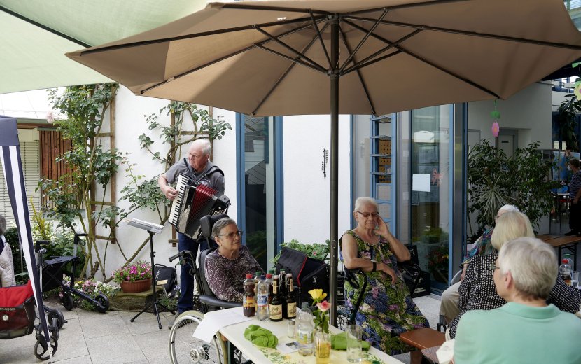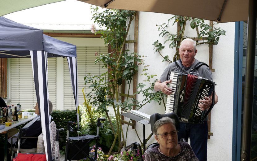 Es war ein Fest für alle Generationen: Die Bewohnerinnen und Bewohner und Mitarbeitenden, die gemeinsam mit ihren Familien an diesem Tag feierten. Oder die Nachbarn, welche auf eine Tasse Kaffee und ein Stück Kuchen vorbeikamen. Besonders beliebt war das leckere Eis des mobilen Eisstandes. Zudem verlockte das Glücksrad den einen oder anderen Besucher dazu, sein Glück zu versuchen und einen der vielen gespendeten Preise mit nach Hause nehmen.