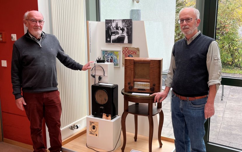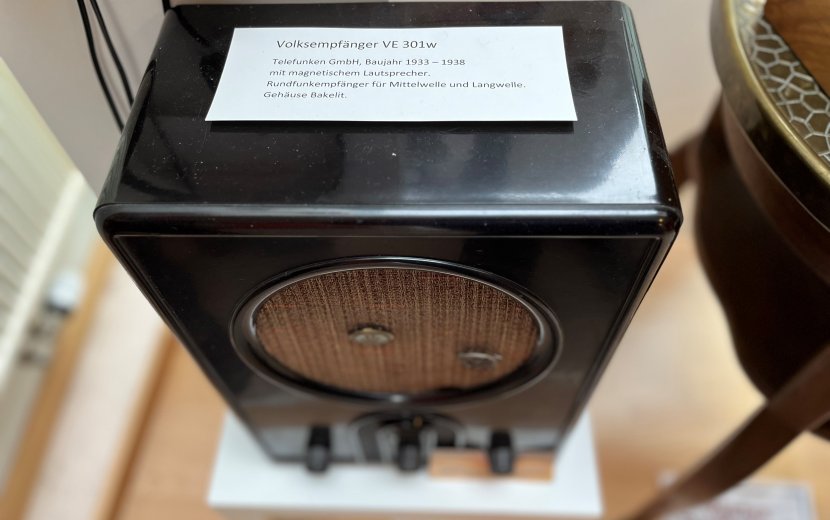 Im Eingangsbereich des Wannweiler Seniorenzentrums erinnert seit Ende Oktober eine neue Ausstellung an die Anfänge des Rundfunks vor 100 Jahren. Auf einem selbstgebauten Podest mit einem Quadratmeter Ausstellungsfläche sind ein Volksempfänger VE301 W von 193, ein Graetzor Aeropilot 35w Baujahr 1934/35, ein Radiodetektor und natürlich eine Schellackplatte aus dem Jahr 1939 zu besichtigen. Wie die Menschen damals Radiosendungen verfolgten, zeigt eine Bildaufnahme von vier Wannweiler Damen aus dem Jahre 1926. Hintergrundinformationen geben erläuternde Texte an den Exponaten. Die Gegenstände sind Leihgaben der Geschichtswerkstatt Wannweil oder stammen aus dem Privatbesitz von Walter Ott. Er und Hauke Petersen von der Geschichtswerkstatt organisierten bereits zum dritten Mal eine einzigartige Ausstellung in der Pflegeeinrichtung.