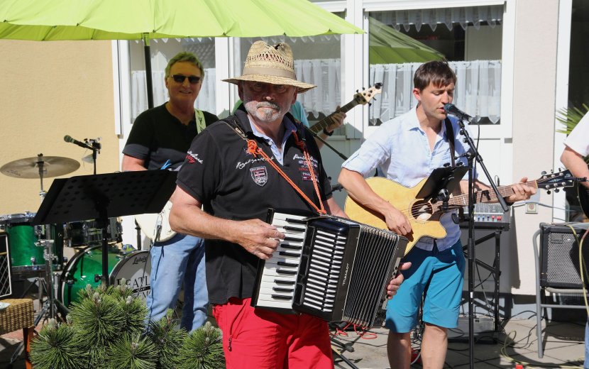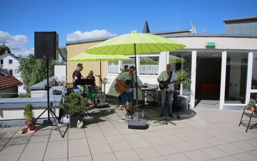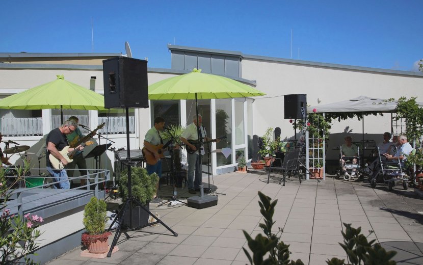 Denn: Auf der Sonnenterasse des Betreuten Wohnens und über drei Etagen hinweg war das Konzert der Beatles of Baltemore zu hören. Lieder von den Beatles durchmischt mit deutschen Schlagern klangen durchs Haus und sorgten für richtige Sommer-Festival-Stimmung. Alle Bewohner des Pflegeheims waren draußen. "Auch unsere Bewohner, die nicht aus ihren Betten herauskönnen! Die haben wir mitsamt dem Bett nach draußen gebracht und auch sie wurden von einer Betreuungskraft mit alkoholfreien Cocktails bewirtet", berichtet Einrichtungsleiterin Sieglinde Holzinger begeistert. Die Bewohner der Betreuten Wohnungen saßen auf ihren Laubengängen im 3. Stock und wurden mit Bier und Sprudel bewirtet. Im Erdgeschoß im Hof saßen Besucher mit ihren Angehörigen und hielten Abstand zueinander. "Ein milder Wind wehte und vertrieb die Hitze des Nachmittags. Es hat einfach alles gepasst. Alle waren von der Musik ergriffen und so glücklich", erzählt Holzinger weiter. Und zu guter Letzt hat es auch der Band im Seniorenzentrum Baltmannsweiler sehr gefallen und die Musiker versprachen, dieses Jahr nochmals zu kommen.