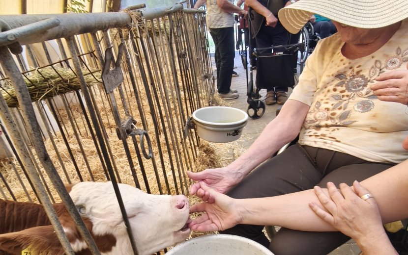 So lässt sich der Besuch auf dem Bauernhof Bressel in Böbingen gut zusammenfassen. "Es war ein gelungenes Erlebnis für unsere Senioreninnen und Senioren", berichtet Ria Priemer aus dem Seniorenzentrum Heubach. Ein Spaziergang führte die Gruppe durch die ländliche Umgebung. "Die Kombination aus Natur, Tieren und den vielen verschiedenen Geräuschen weckte Erinnerungen. Unsere Senioren erzählten lebhaft von ihren Erlebnissen aus der Kindheit und Jugend", so Priemer. Alle waren sich einig, dass ein Besuch auf dem Bauernhof gut für die Gesundheit ist, mit viel frischer Luft und Bewegung. "Außerdem verwöhnte uns die Familie Bressel mit verschiedenen selbstgemachten Kuchen und frischer Milch – dazu Kaffee und Tee. Das war ein großartiges Angebot, das zur Förderung der Lebensqualität unserer Bewohnerinnen und Bewohner beigertragen hat! Herzlichen Dank dafür und wir freuen uns schon auf den nächsten Besuch."