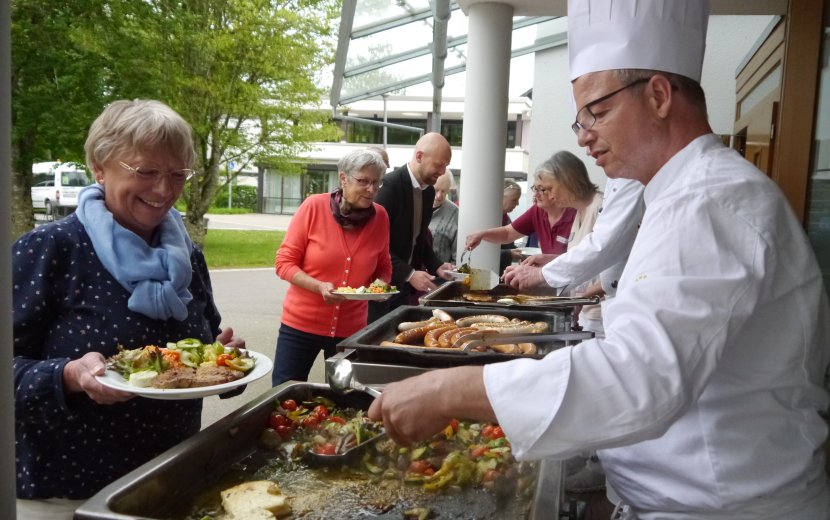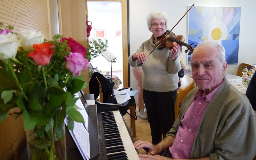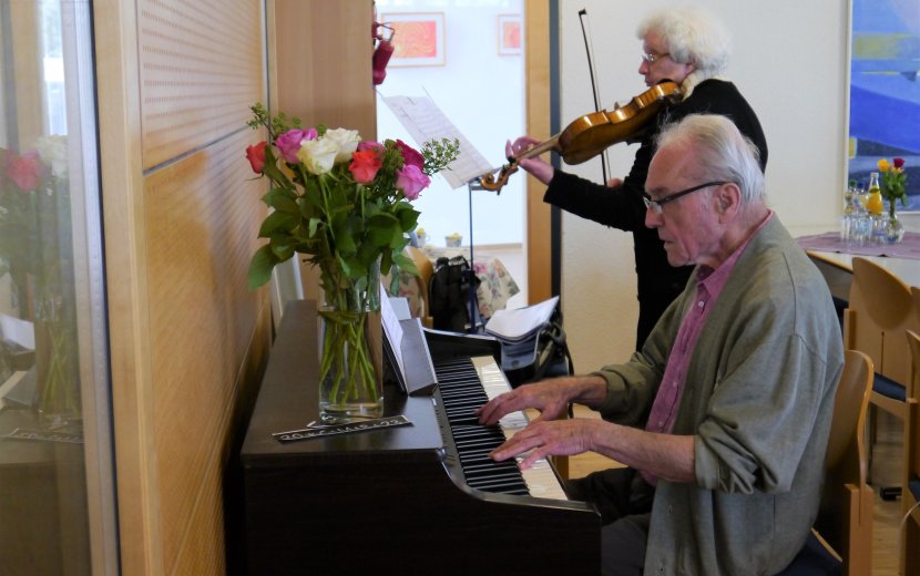 Musikalisch begleitet wurde die Veranstaltung von Verena Söllner an der Geige und Gottfried Stumpp am Klavier. Beide wohnen im Betreuten Wohnen. Am Ende ließ sich die Festgemeinschaft Gegrilltes und Salate der Neuland-Küche der Zieglerschen schmecken.