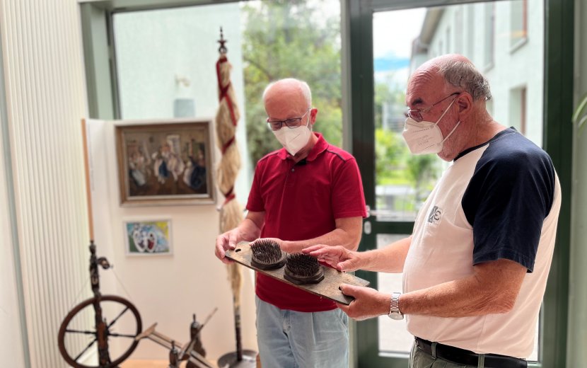Im Seniorenzentrum Wannweil können zur Zeit Kunkel, Schwingstock oder Spinnrad ganz aus der Nähe betrachtet werden. | Foto: Jacqueline de Riese