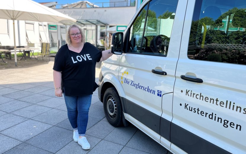 Immer montags bis freitags fährt der Tagespflegebus der Seniorenzentren durch die Gemeinden Kirchentellinsfurt, Kusterdingen und Wannweil. Hinter dem Steuer sitzt Petra Weber.