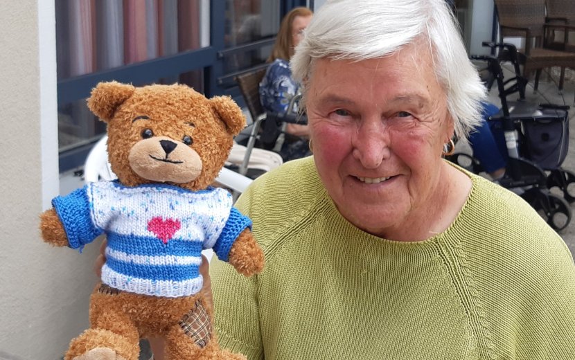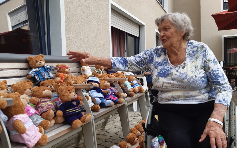 „Es ist unglaublich, welche Reaktion die Teddys auslösen, ausnahmslos jeder von den Bewohnerinnen und Bewohner reagiert positiv darauf. Eine Bewohnerin heute sogar mit einem erstaunten Ausruf und einem lauten Lachen“, erzählt Nathalie Wiedmann, Leiterin der Sozialen Betreuung.