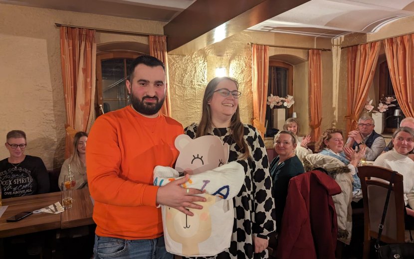 Auch Pflegefachkraft Madalin Grigoriu bekam an diesem Abend ein Geschenk überreicht. Madalin und Oana, die auch im Seniorenzentrum arbeitet, wurden Anfang Dezember Eltern einer kleinen Tochter.