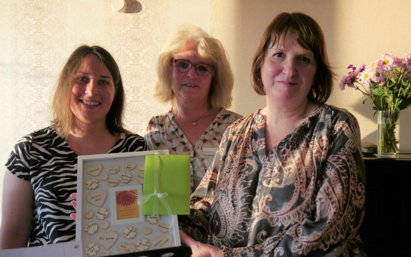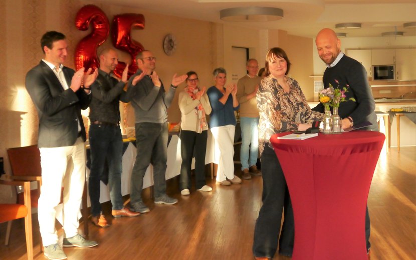Dass sich der Führungsstil der erfahrenen Einrichtungsleiterin im Taläcker bewährt, hörte man den Zitaten, einem Brief und einem Gedicht an. Diese wurden von Monika Schubert, Leiterin der Hauswirtschaft und Nathalie Wiedmann, Leiterin der Sozialen Betreuung stellvertretend für die Mitarbeiterschaft vorgetragen. Darin Zeilen wie: „Sie ist von früh bis spät im Einsatz. Sie hat immer ein offenes Ohr für Mitarbeitende und setzt sich für sie ein. Sie hat hohe Ansprüche. Es ist mir eine Freude und Ehre, unter Ihrer Leitung arbeiten zu dürfen. In deinem Blick liegt mehr als nur Führung, es ist Vertrauen, Hoffnung, sogar Verführung. Du hast uns ermutigt, nie den Glauben zu verlieren, uns immer wieder neu zu inspirieren.“