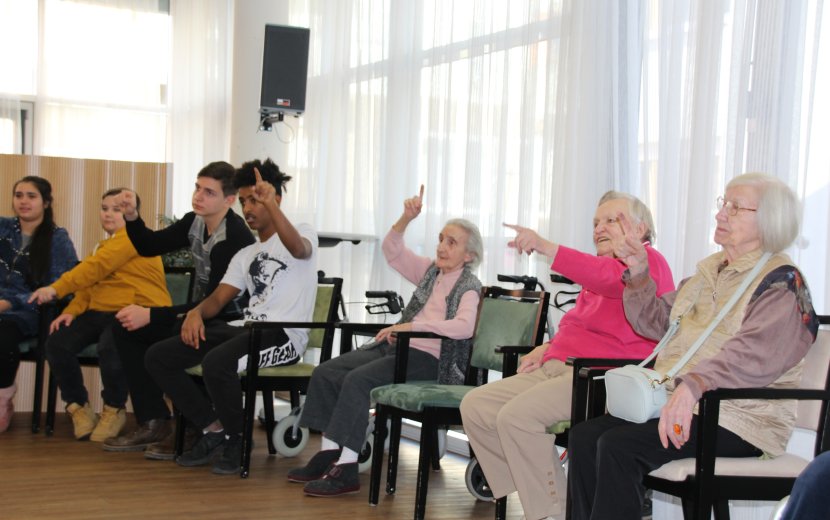 Aber genau darum ging es: die Schülerinnen und Schüler zwischen 11 und 17 Jahren, die aus zwölf verschiedenen Ländern kommen, sollten das Seniorenzentrum kennenlernen, sollten einen Einblick bekommen, wie das Leben in einem Pflegeheim ist, welche Berufe dort ausgeübt werden und sollten die Möglichkeit haben, die Senioren kennenzulernen. Und für die Senioren war es ebenfalls eine interessante Abwechslung vom Alltag.