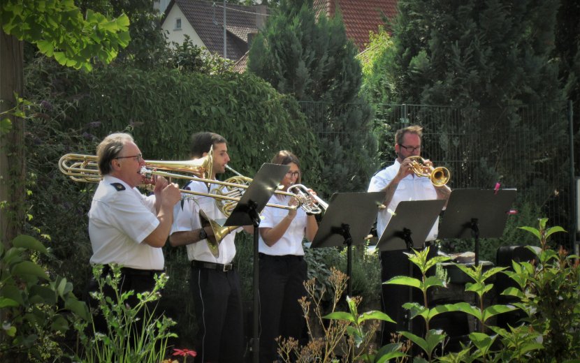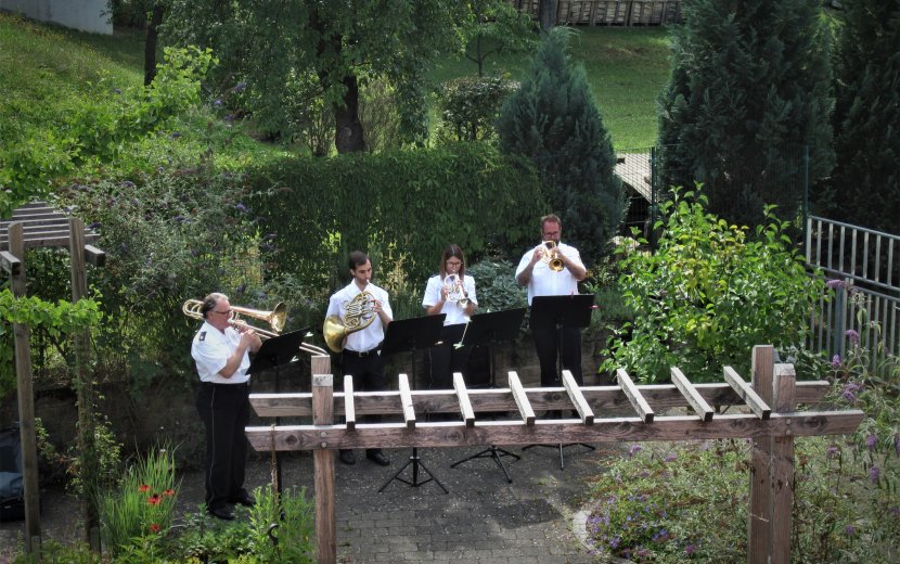 Bei strahlendem Sonnenschein konnten so die Bewohner aus sicherer Entfernung und unter Einhaltung der Hygienevorschriften den musikalischen Darbietungen der Musiker folgen. Die Bewohner waren begeistert und ließen das Quartett auch erst nach einer Zugabe wieder gehen.