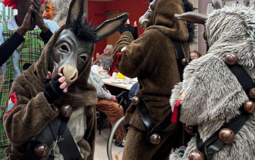 Zünftig in ihren Häß besuchten die „D´Wannweiler Esel Narrengruppe 1998 e.V.“ und die „Narrenzunft Burghau Goischter e.V.“ die Pflegeeinrichtung der Zieglerschen und feierten Fasching mit allen.