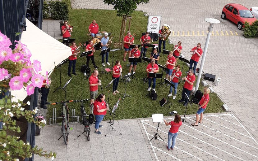 Um dies gleichzeitig auf drei Wohnbereichen verwirklich zu können, packten die Jungen Menschen vom Rotaract Club Nürtingen mit an. „So hatten wir auf jedem Wohnbereich einen Grillmeister und eine Grillmeisterin“, berichtet Nathalie Wiedmann, Leiterin der Sozialen Betreuung erfreut. Neben dem leckeren Grillgut gab es auf den Wohnbereichen ein buntes Programm der Sozialen Betreuung. „Da es schon eine kleine Tradition ist, dass der Musikverein Unterboihingen bei unseren jährlichen Sommerfesten spielt, haben wir das auch dieses Jahr gemacht. Mit genügend Abstand unter freiem Himmel vor dem Haus“, erzählt Wiedmann weiter. So konnten die Bewohnerinnen und Bewohner von den Balkonen aus lauschen. Zu bekannten Melodien, wie dem Böhmischen Traum sei kräftig mitgeschunkelt und geklatscht worden. Auch einige Bewohner des benachbarten Betreuten Wohnens hörten die Musik und stellten sich vor ihre Haustüren, um die Musik zu genießen. Ein Bewohner kommentierte am Abend zufrieden: „Oifach schee!“