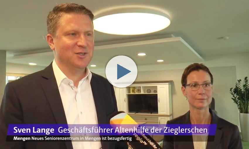 Sven Lange, Geschäftsführer in der Altenhilfe der Zieglerschen sagt: „Wir sind sehr stolz auf unser neues in die Gemeinde integriertes Stadthaus und freuen uns, dass wir von der Altenhilfe der Zieglerschen mit unserem Seniorenzentrum das Diakonische Angebot in Mengen abrunden dürfen. Mit unserem neuen Seniorenzentrum haben wir für Bürgerinnen und Bürger aus Mengen und Umgebung, die im Alter zentral in der Stadt leben wollen, ein einzigartiges und sehr schönes Angebot geschaffen. An dieser Stelle ein herzliches „Danke“ an die Stadtverwaltung Mengen für die tolle und unkomplizierte Zusammenarbeit. Wir danken allen beteiligten Handwerkern für die hohe Qualität in der Ausführung und der Deutschen Fernsehlotterie, die dieses Projekt mit über 270.000 Euro gefördert hat! Unserem hochmotivierten tollen Team vor Ort wünschen wir einen guten Start und allen künftigen Gästen wünschen wir, dass sie sich bei uns wohlfühlen können!“