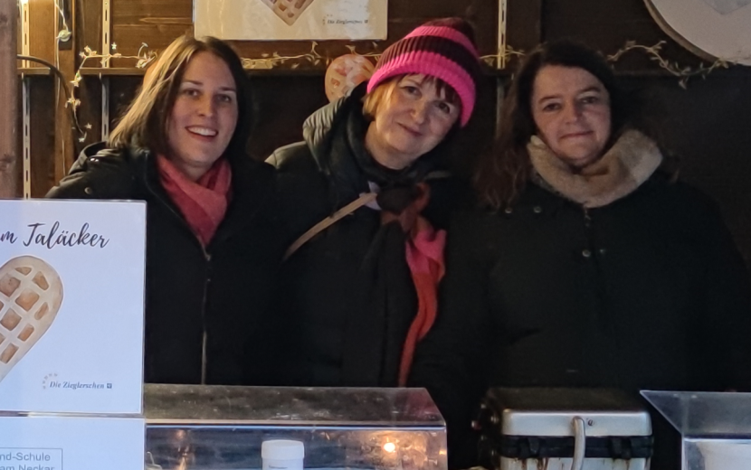 Waffelverkauf auf dem Wendlinger Weihnachtsmarkt für Stiftergemeinschaft und Klassenkasse. Hier 3 von 35 Helferinnen und Helfern: (v.l.n.r.): Nathalie Wiedmann, Suzana Tica, Susanne Olhorn (Foto: Die Zieglerschen)