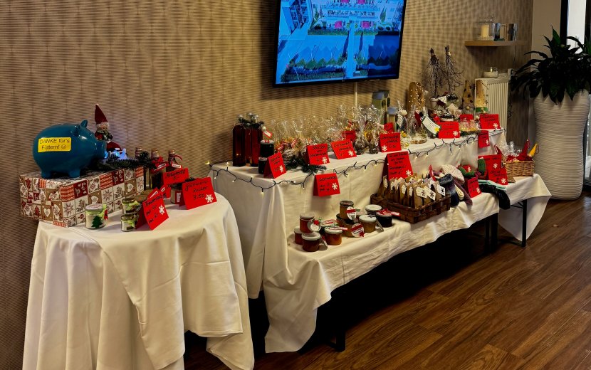 Zum Verkauf angeboten wurde zudem allerhand selbst gemachtes aus der Mitarbeiterschaft - Handarbeits- und Bastelarbeiten, Marmeladen, Gebäck, Liköre und Öle. „Das war wieder herrlich, diese besondere Stimmung zu spüren, die sich jedes Jahr bei unserem Weihnachtsmarkt bemerkbar macht“, erzählt Katja Schröder, Leiterin der Sozialen Betreuung. Und so tummelte sich Alt und Jung auf dem Platz vorm Haus zum Stöbern, Kaufen und Genießen und als die Dunkelheit kam, verbreiteten Feuerschale und Lichterglanz umso mehr eine frohe, besinnliche Weihnachtsstimmung.