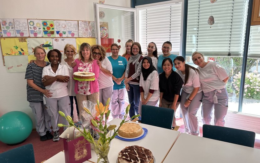 Zudem wurde die Einrichtungsleitung Regina Hönes Ende September von ihren Mitarbeiterinnen und Mitarbeitern mit einer leckeren Torte überrascht. Diese freuten sich, mit ihr das 10-jährige Dienstjubiläum beim Träger „Die Zieglerschen“ zu feiern.