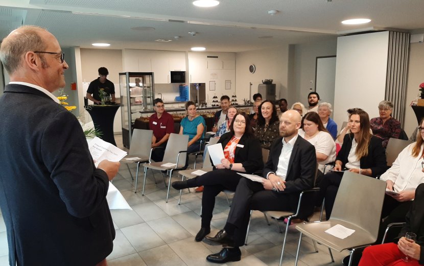 Dankbar ist sie dafür, dass sie bei ihrer Arbeit ein sehr engagiertes und erfahrenes Team an ihrer Seite hat. „Das ist im Alltag unheimlich wertvoll“, sagt sie. Und auch für ihre Einrichtungsleitungs-Kolleginnen aus den umliegenden Häusern der Zieglerschen, die alle zur Feier erschienen sind, und Regionalleiter Gerhard Straub hat sie sehr lobende Worte: „Sie haben mich alle sehr offen empfangen und den Start hier in Bad Waldsee sehr erleichtert“, erklärt sie.
