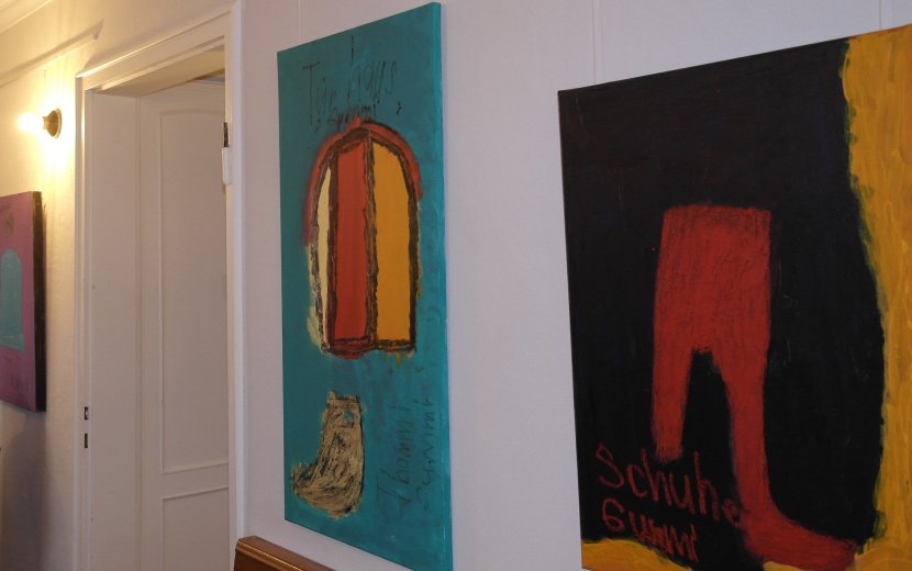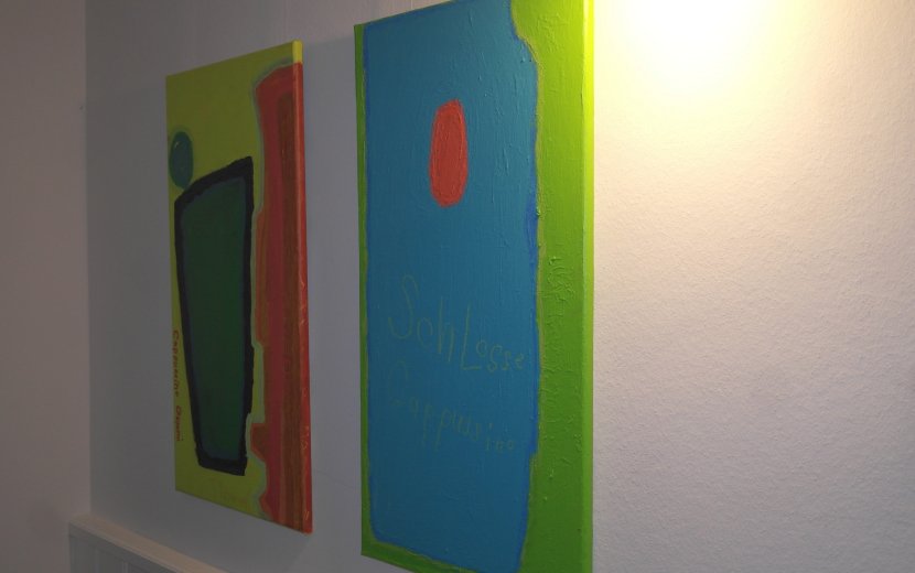 Ausstellung „Cappusino im Haus“ in Schillers Café in Bad Saulgau: Die Werke von Thomas Zinke sind in der Malwerkstatt der Zieglerschen in Wilhelmsdorf entstanden. (© Die Zieglerschen, Claudia Wörner)