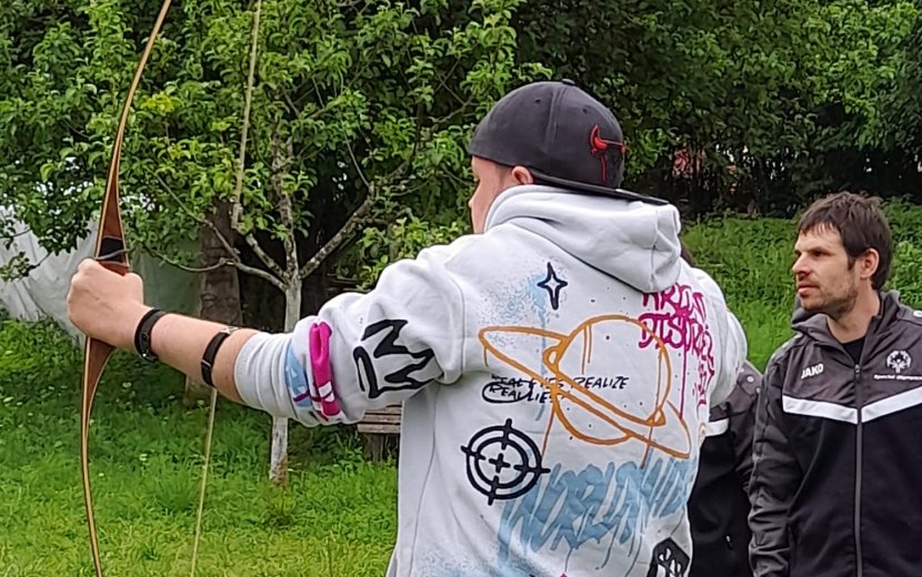 Nach dem Bezug der Unterkünfte und einem ersten gemeinsamen Abendessen trafen Helene und Dieter von der Wildnisschule „Roots“ ein, die wie jedes Jahr das erlebnispädagogische Programm gestalteten. Beim Lagerfeuer wurde der Ablauf der kommenden Tage besprochen – mit Aktivitäten wie Kanufahren, Bogenschießen, Baumklettern, einer Seilbrücke und einer Höhlenbegehung.
