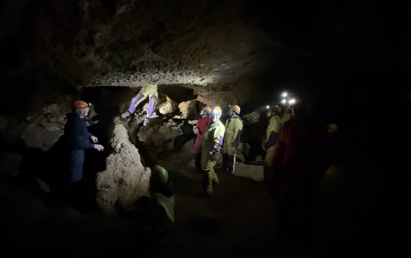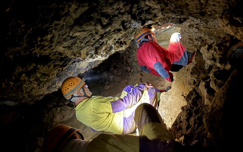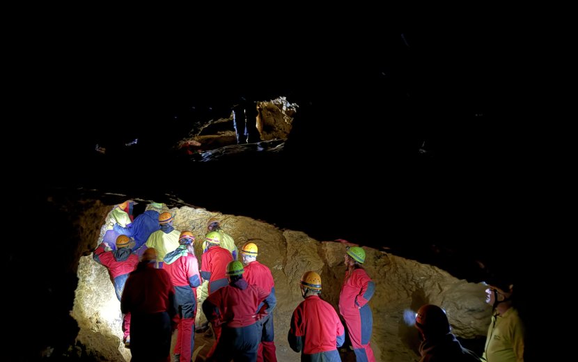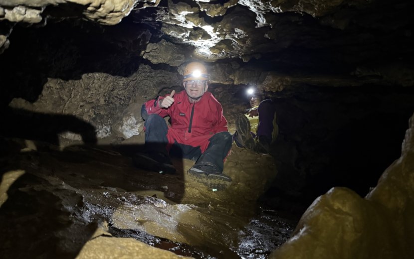 Am dritten Tag ging es zur Höhlenbegehung. Nach einer Wanderung wurden Höhlenanzüge und Helme angelegt, und der Eingang entweder per Wanderweg oder Abseilen erreicht. In völliger Dunkelheit erlebten die Teilnehmer einen intensiven Moment der Stille und Orientierungslosigkeit – ein tief beeindruckendes Erlebnis. Danach wurde die Höhle weiter erkundet, durch enge Gänge gekrochen und über feuchte Felsen geklettert. Zurück am Tageslicht wurde gevespert, bevor ein Wolkenbruch die Gruppe zu einer kurzen Pause zwang. Das letzte warme Abendessen und ein weiterer Lagerfeuerabend rundeten den Tag ab. Mit einem wehmütigen Abschied von Helene und Dieter endete das Programm.