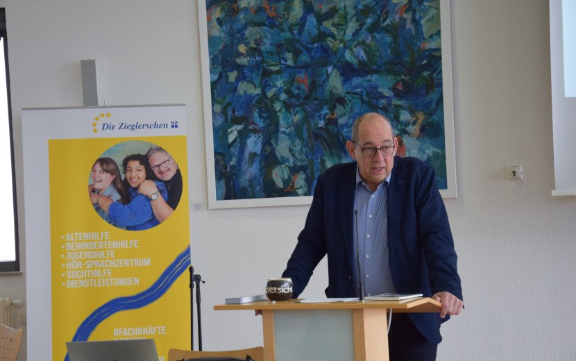 „Wir leben in einer Zeit, in der die Inklusion aller Menschen in einem funktionierenden Gemeinwesen das erklärte Ziel ist. Ein Ziel, zu dem auch wir Zieglersche zu 100 Prozent stehen“, betonte Uwe Fischer, Geschäftsführer der Zieglerschen Behindertenhilfe, zum Auftakt des Fachtags Lautsprachunterstützende Gebärden in Wilhelmsdorf. „Mitbestimmung und wirksame Teilhabe für alle Menschen sind darin richtungsweisende Forderungen. Um teilhaben zu können, müssen Menschen in einen Austausch kommen. Sie müssen ihre Beiträge, ihre Freuden und ihren Ärger mitteilen können. Und sie brauchen ein Umfeld, in dem sie mit ihren Äußerungen auf Interesse und Verständnis treffen“, erklärte er weiter.