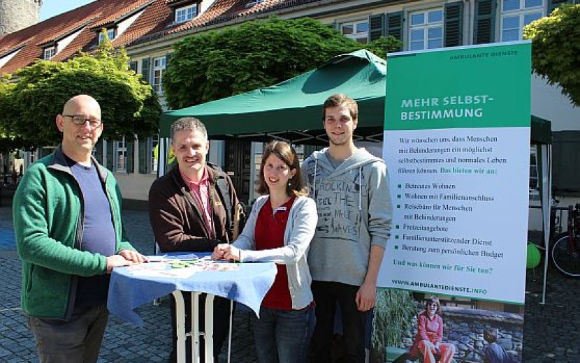Mit einem Aktionsstand zum Motto „Einfach für alle - gemeinsam für eine barrierefreie Stadt“, haben sich die Ambulanten Dienste der Zieglerschen anlässlich des Europäischen Protesttages für Menschen mit Behinderungen in Markdorf, Ravensburg und Aulendorf präsentiert. Unterstützung bekamen die Mitarbeiterinnen und Mitarbeiter der Zieglerschen an ihrem Stand in Ravensburg von Torsten Hopperdietzel, dem ehrenamtlichen kommunalen Behindertenbeauftragten für den Landkreis Ravensburg. In Markdorf kooperierten die Zieglerschen mit der St. Gallus-Hilfe der Stiftung Liebenau und dem Sozialverband VdK Ortsverband Markdorf.