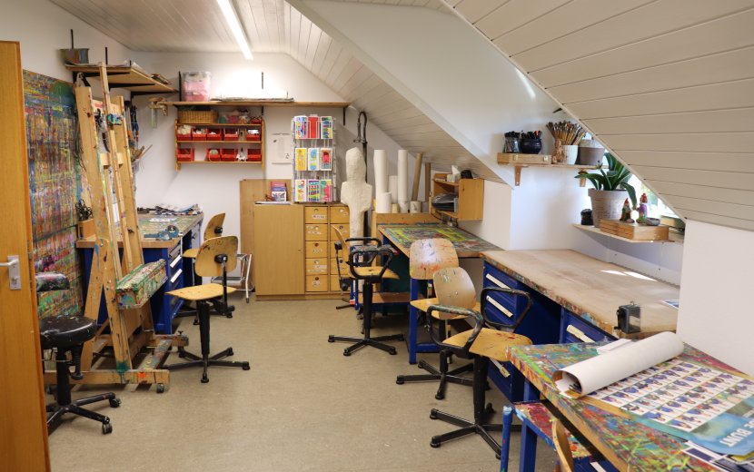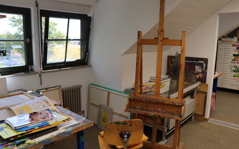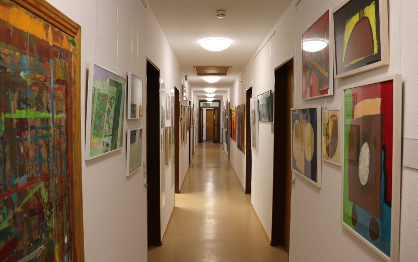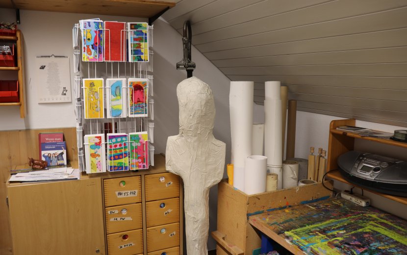 „Nachdem die Fördergruppen und der Seniorenbereich schon sehr lange hier im Haus aktiv sind, haben wir mit der Teilhabebegleitung und der kaufmännischen Leitung, der MAV und der Unterstützten Kommunikation weitere Menschen in dieses geschichtsträchtige Haus gebracht. Jetzt setzen wir dem Ganzen die Krone auf: auch das Dachgeschoss haben wir mit der Malwerkstatt und der Näherei aus dem Dornröschenschlaf geweckt. Es tut dem Haus Hoffnung gut. Es ist in den Fluren und Treppenhäusern noch farbiger und lebendiger geworden“, freut sich Fischer.