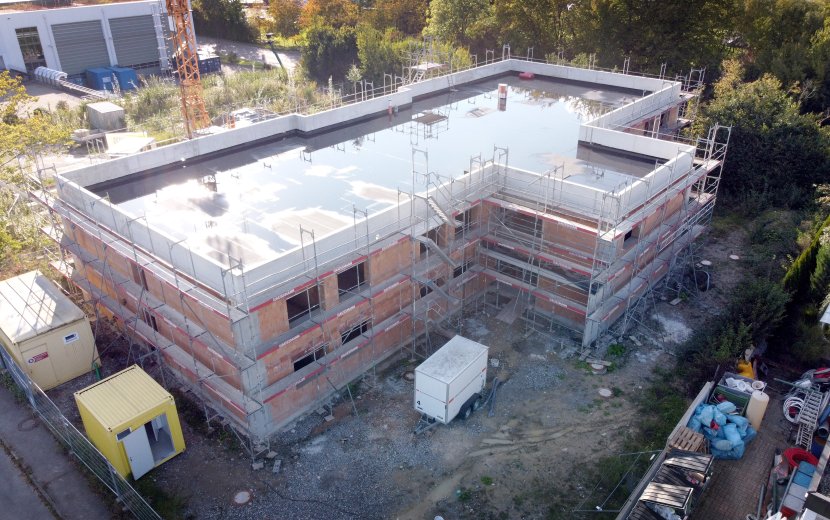 Insgesamt beträgt das Investitionsvolumen rund 5,4 Millionen Euro für das neue zweigeschossige Gebäude, das mit einer Luft-Wärmepumpe und einer PV-Anlage ausgestattet ist.