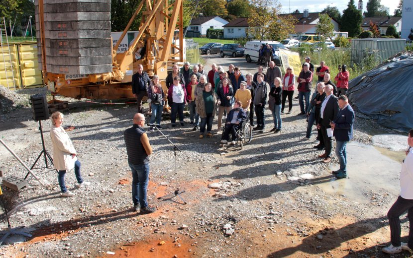 Höhepunkt des Richtfests war der traditionelle Richtspruch. Diesen trug Simone Wohlwender, Geschäftsführerin des gleichnamigen Bauunternehmens Josef Wohlwender, in Versform vor. „Nun wollen wir voll Dankbarkeit dran denken, dass in all der Zeit, in der sich hier die Arbeit rührte, kein schlimmer Unfall passierte“, und sie wünschte „den Betreuern, den Bewohnern vor allem, an den Räumen Wohlgefallen und Gottes Segen diesem Haus – allen, die hier gehen ein und aus.“