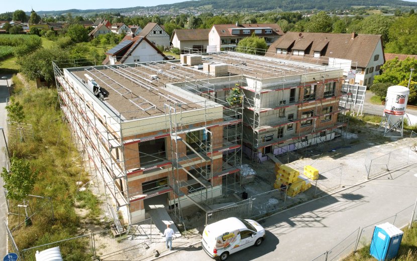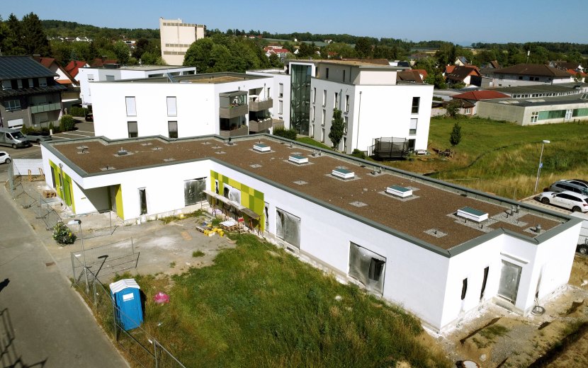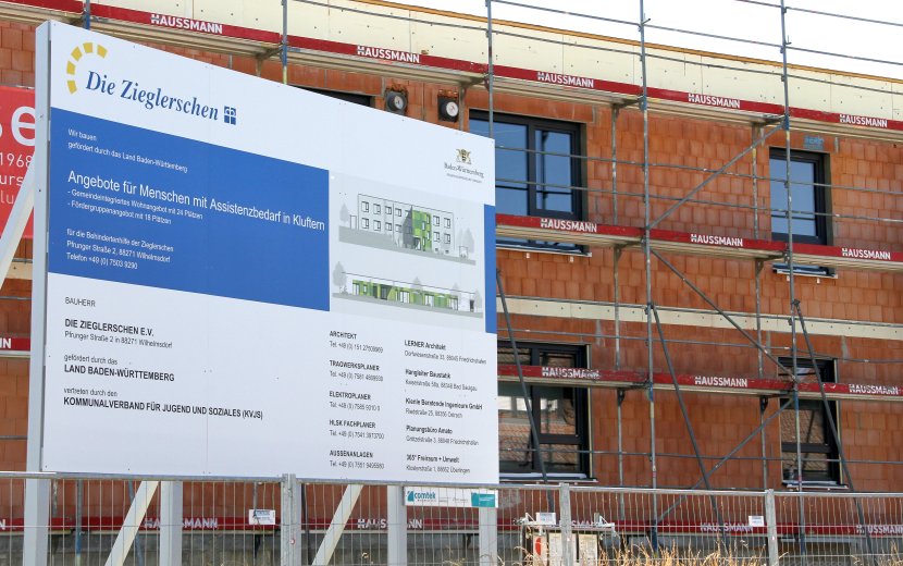 Auf dem Areal in der Anna-Bulach-Straße in Friedrichshafen-Kluftern bauen die Zieglerschen derzeit ein zweigeschossiges Wohnhaus für Menschen mit Behinderung mit insgesamt 24 Plätzen. Im benachbarten Gebäude entsteht ein Beschäftigungsangebot in Fördergruppen für 18 Personen. (Foto: Bernhard Wrobel/ Die Zieglerschen)