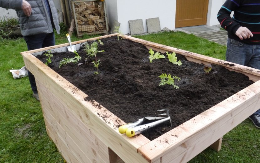 Das Hochbeet mit den Maßen 1,80 m x 1,20 m aus stabilem und damit langlebigem Lärchenholz sowie einem hochwertigen Edelstahleinsatz wurde in einer Behinderten-Werkstatt bei Dresden gefertigt. Die Entwicklung dieses speziellen rollstuhlgeeigneten Hochbeetes wurde gemeinsam mit einem Behindertenverband in Dresden entwickelt. Auch die passende Befüllung mit Erde sowie ein Nagergitter, ein Buch zum Thema und einige Gartengeräte für kleine Hände sind Bestandteil dieses Spendenpaketes.