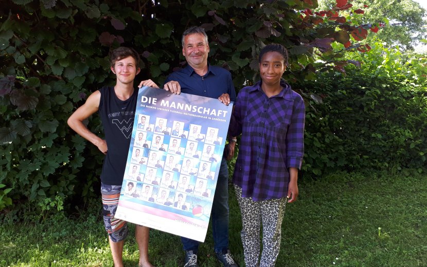 Freuen sich über das neue Fußballgebärden-Poster: Die Redakteure der Mühlezeitung haben tolle Arbeit geleistet!