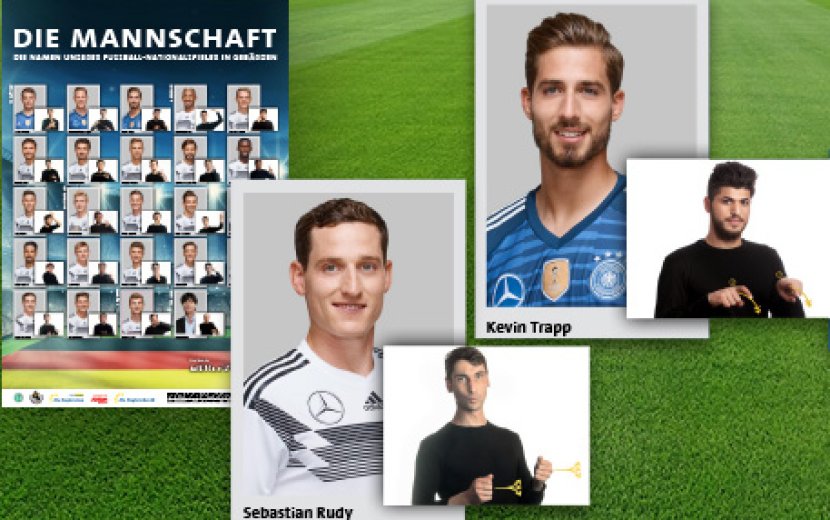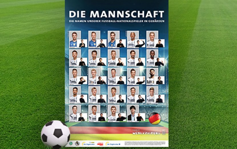 In Zusammenarbeit mit der Aktion Mensch, dem Deutschen Fußball-Bund (DFB) und dem Dachverband Deutscher DEAF Fanclubs e.v. (DDDF) haben die Redakteure der Mühlezeitung das Poster mit den Namen der deutschen Nationalspieler in Gebärden erarbeitet.