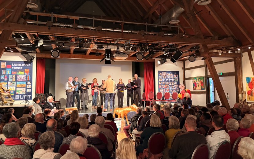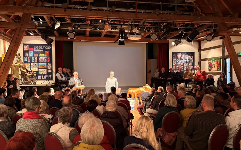 Rund 150 Besucherinnen und Besucher sind der Einladung gefolgt und haben damit die Kunstschaffenden der Malwerkstatt und die Mitarbeitenden rund um Silke Leopold gewürdigt. Sie leitet in der Nachfolge der Gründerin seit 30 Jahren die Malwerkstatt.