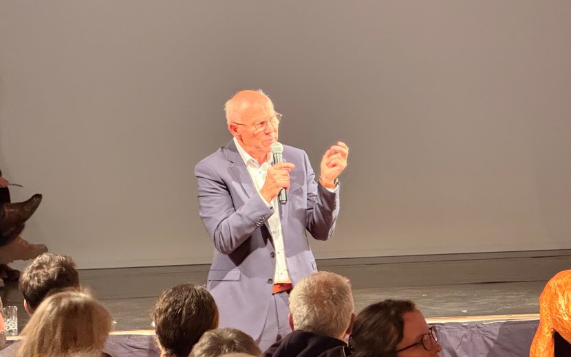 „Heute ist der 9. November“, betonte Werner Baur, Aufsichtsratsvorsitzender der Zieglerschen. Dieser Tag sei ein schicksalhaftes Datum in der deutschen Geschichte, hob er mit Blick auf die Reichspogromnacht 1938 und dem menschenverachtenden Weltbild der Nationalsozialisten hervor. Infolgedessen wurden mehrere zehntausend Menschen mit Behinderung ermordet. „Was Sie tun, ist ein wichtiges Statement wider diesen Ungeist, der heutzutage leider wieder um sich greift“, rief er Silke Leopold und ihren Mitarbeitenden zu. Die Kunst, die in der Malwerkstatt entstehe, sei voller Energie und Lebensfreude und strafe diesem Ungeist Lüge, so der Aufsichtsratsvorsitzende.