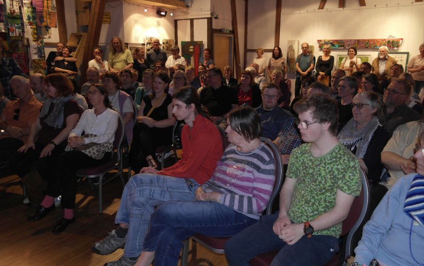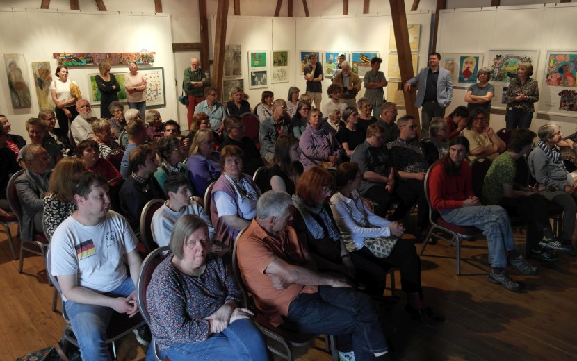 Eine farbenreiche Mischung hing nicht nur an den Wänden, sondern auch bunt gemischte Besucher füllten die Scheune des Kulturvereins. Viele kamen zur Eröffnung der Ausstellung „Wenn der Wind durch die Zeiten weht", 30 Jahre Malwerkstatt. Ausgestellt ...