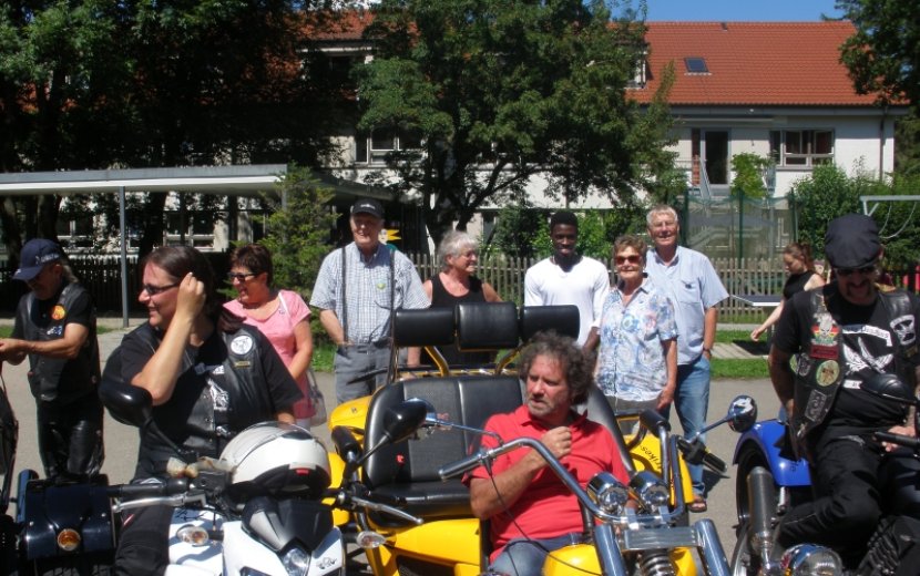 Das gemeinsame Erlebnis beschränkte sich jedoch nicht nur auf die Fahrten durch die Straßen in und um Wilhelmsdorf. Die Fahrer interessierten sich auch für den Alltag der Menschen mit Behinderung. Einige der Triker hatten sogar ihre Fahrzeuge mit Metallplatten „barrierefrei" gemacht, da sie letztes Jahr festgestellt hatten, dass das Auf- und Absteigen Manchem etwas Probleme bereiteten. Dies zeigt aber auch, wie sehr sie sich selbst auf dieses Event gefreut und vorbereitet hatten.