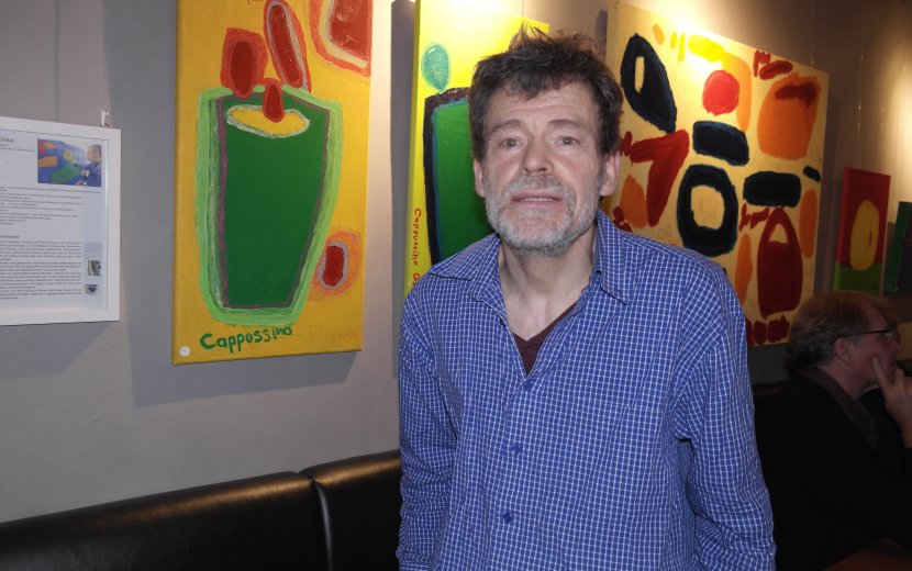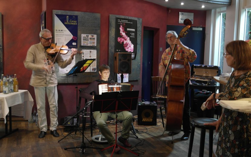Regelmäßig und seit vielen Jahren kommen die fünf Künstlerinnen und Künstler in die Malwerkstatt. Fast alle haben bereits an zahlreichen Ausstellungen teilgenommen und Preise gewonnen. „Seit 1985 hat sich das Atelier zu einer Plattform entwickelt und bietet den Künstlern die Möglichkeit, mit ihren Werken in der Öffentlichkeit aufzutauchen“, schildert Silke Leopold. Bei der Ausstellungseröffnung im Kulturzentrum Linse sorgte das Trio Noanca mit Geige, Akkordeon und Kontrabass mit Musik aus aller Herren Länder für den gelungenen Rahmen.