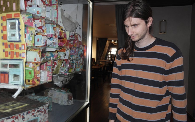 Der Titel der Ausstellung „Lieblingsfarbe BUNT“ in der Weingartener Linse ist Programm. Schon beim Betreten des Kulturzentrums fallen dem Besucher die Bilder von Karl Gindele ins Auge. Ob in Rottönen, ganz in Blau oder in erdigen Tönen – dick aufgetragene Farbe spielt in den großformatigen Gemälden des über 80-jährigen, mehrfachen Bundespreisträgers die Hauptrolle. Seit 37 Jahren besucht er regelmäßig die Malwerkstatt der Zieglerschen und gehört damit zu den Künstlern der ersten Stunde. Mindestens zweimal muss man auf die Werke des jüngsten Künstlers Pascal Grenzer im Kassenhäuschen der Linse schauen. Mit Papier und Tesafilm schafft er filigrane und detailgenaue Abbilder von Häusern, Autos und Wohnmobilen. Schiebetüren bewegen sich, Katzenklappen wackeln und die Dächer seiner Modelle sind abnehmbar. „Rauchmelder, Sicherungskasten und Einbruchsicherung gehören zu seinen Lieblingswörtern“, gibt Silke Leopold, Leiterin der Malwerkstatt, einen kleinen Einblick in die Gedankenwelt des 24-Jährigen.