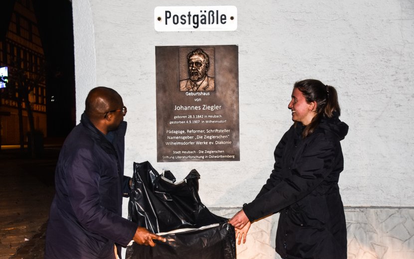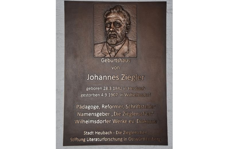 Am Geburtshaus von Johannes Ziegler erinnert nun eine Bronzetafel an den Sohn der Stadt Heubach. Enthüllt wurde die Tafel, die von der Stadt, der Stiftung „Literaturforschung in Ostwürttemberg“ und den Zieglerschen gestiftet wurde, von Heubachs Bürgermeister Dr. Joy Alemazung und einer Nachfahrin Zieglers, Annika Ziegler.