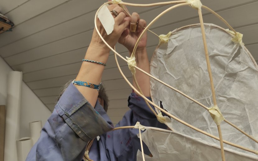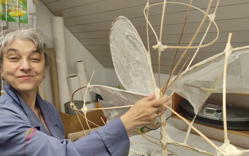 Bundeskunstpreisträgerin Franziska Fiedler bei ihrer Arbeit an einer Leuchtfigur für das Ravensburger Lichterfest. © Die Zieglerschen/ Silke Leopold