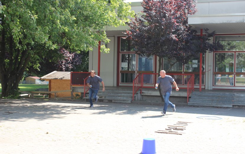 Als Dankeschön haben die Kinder den beiden Gästen Kuchen gebacken. Beim gemeinsamen Hindernislauf wurde klar: Öhler und Zagorjan dürfen gerne auch den ganzen Tag noch bleiben.